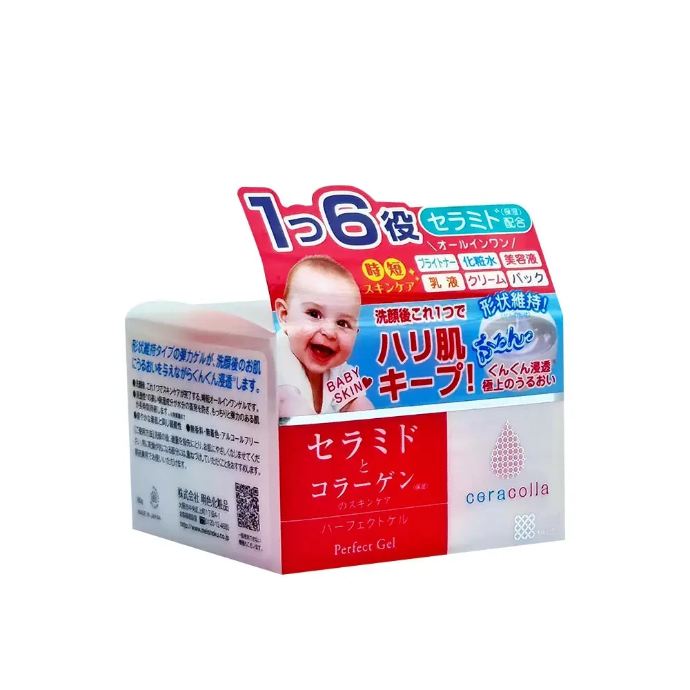 Meishoku Ceracolla Perfect Gel is a Japanese all-in-one gel with 6 functions; lotion, beauty essence, emulsion, cream, pack effect, and brightener. Contains highly moisturizing ingredients triple ceramide and nano collagen. Three kinds of ceramides (moisture ceramide, barrier ceramide, smooth ceramide) protect your skin and retain moist. Nano collagen retains moisture on the stratum corneum and makes your skin firm and plump.