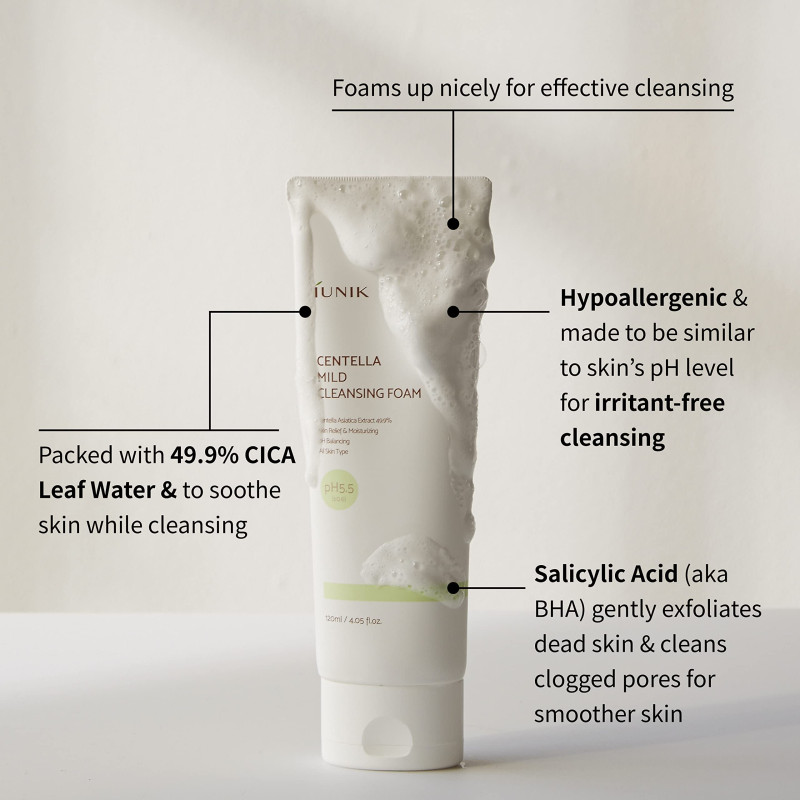• Free of harsh chemicals: Iunik Centella Mild Cleansing Foam is free of harsh chemicals and fragrances, making it suitable for sensitive skin.