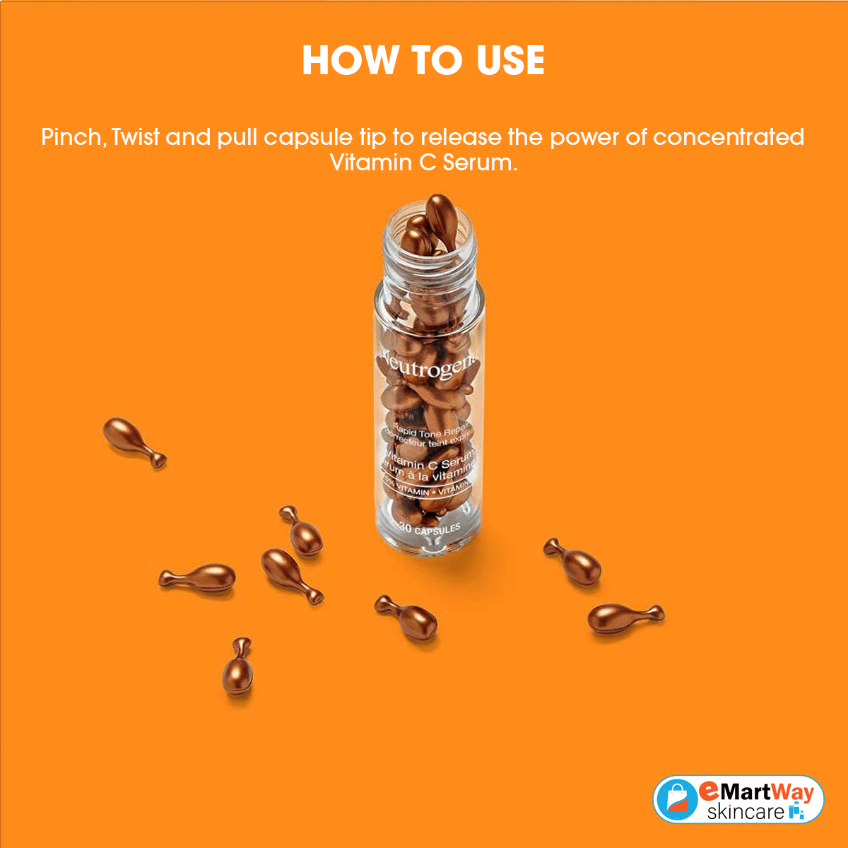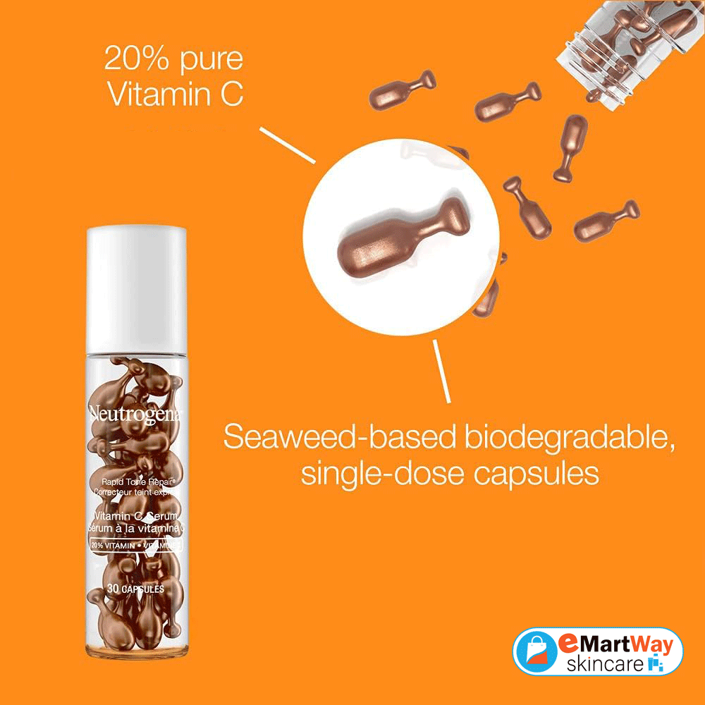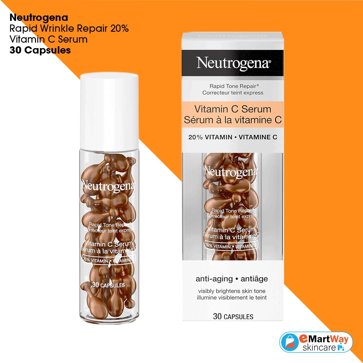 Neutrogena Rapid Wrinkle Repair 20% Vitamin C Serum fights skin-aging factors while brightening and evening skin tone with Neutrogena Rapid Tone Repair 20% Vitamin C Serum Capsules.Get visibly smoother, brighter skin in just one week.These serum capsules are clinically proven to help reduce the look of dark spots, and the appearance of fine lines and wrinkles.