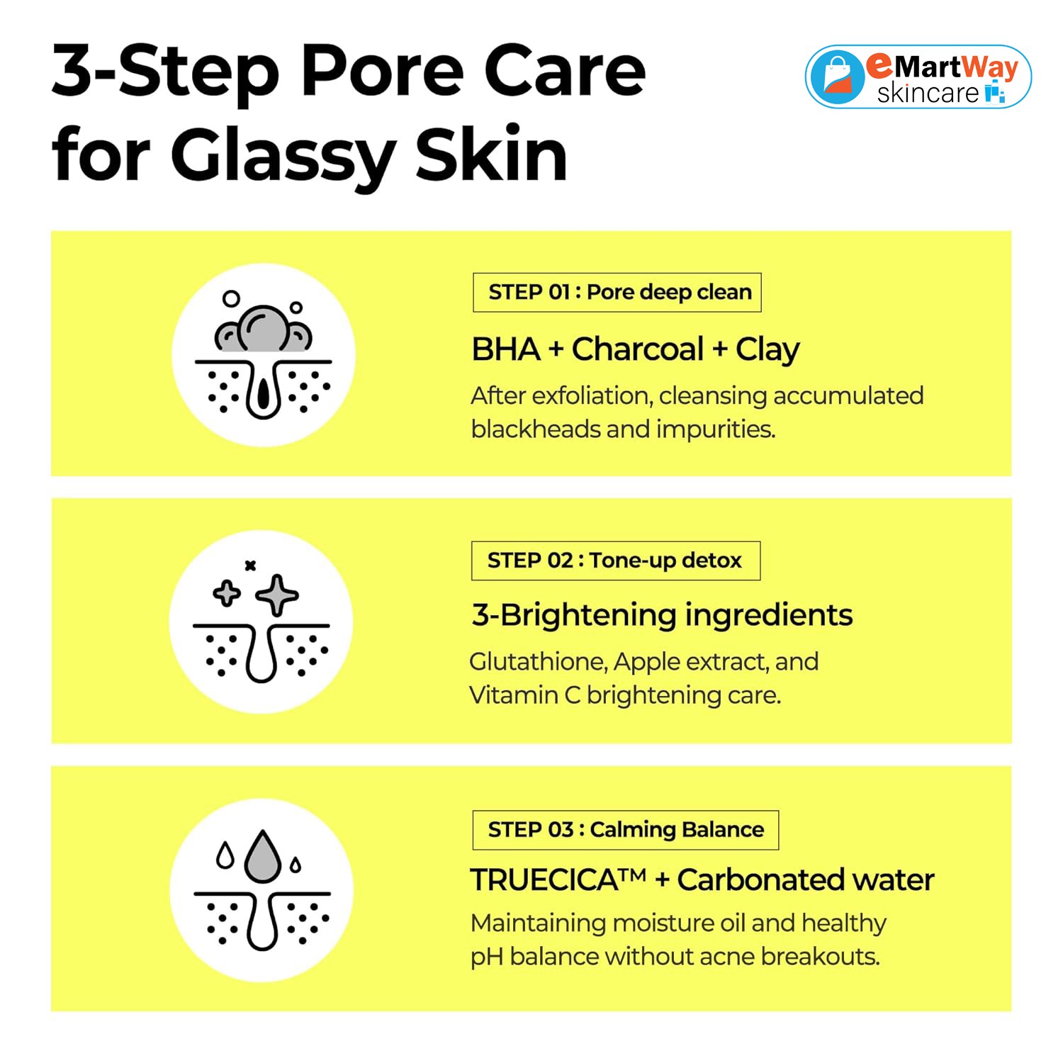 Carbonated Water: It creates a bubbling effect that helps to deeply cleanse and exfoliate the skin.